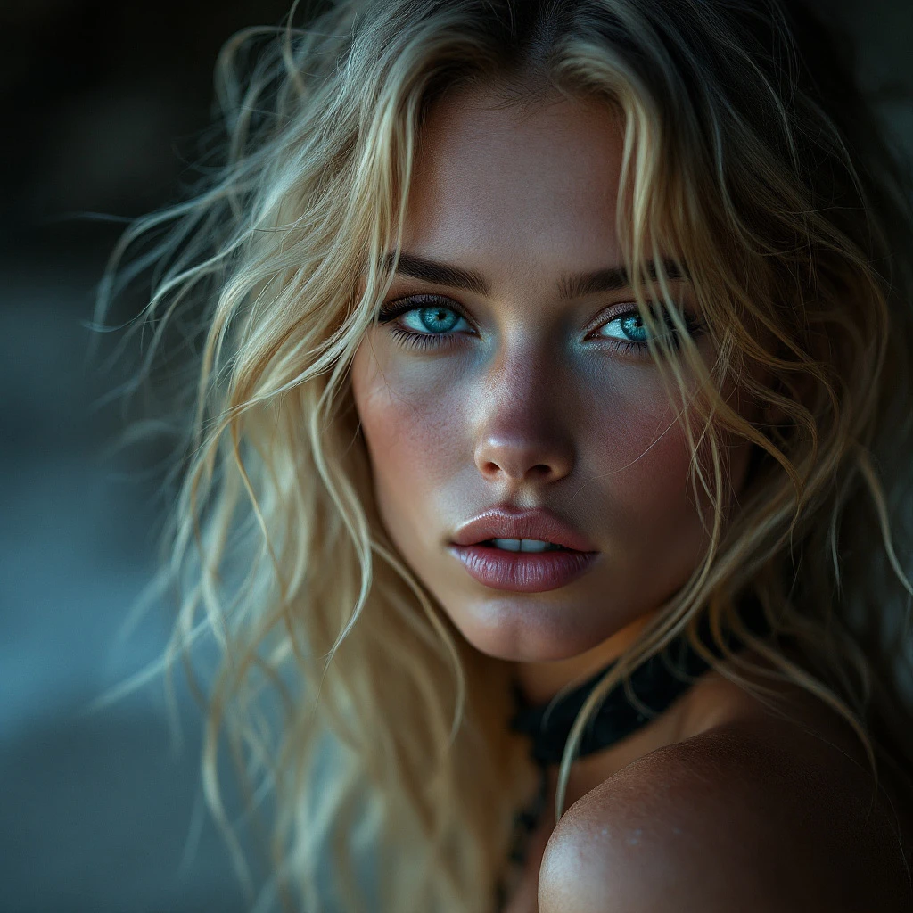 russian, blonde, 18 years old , model, in beach gorgeous woman hashion model 24 years old, vogue magazine editorial photo, cyberpunk, hyperrealistic, 3 lights ambience, Phase One IQ4 with Schneider 80mm LS f/2. 8, full quality