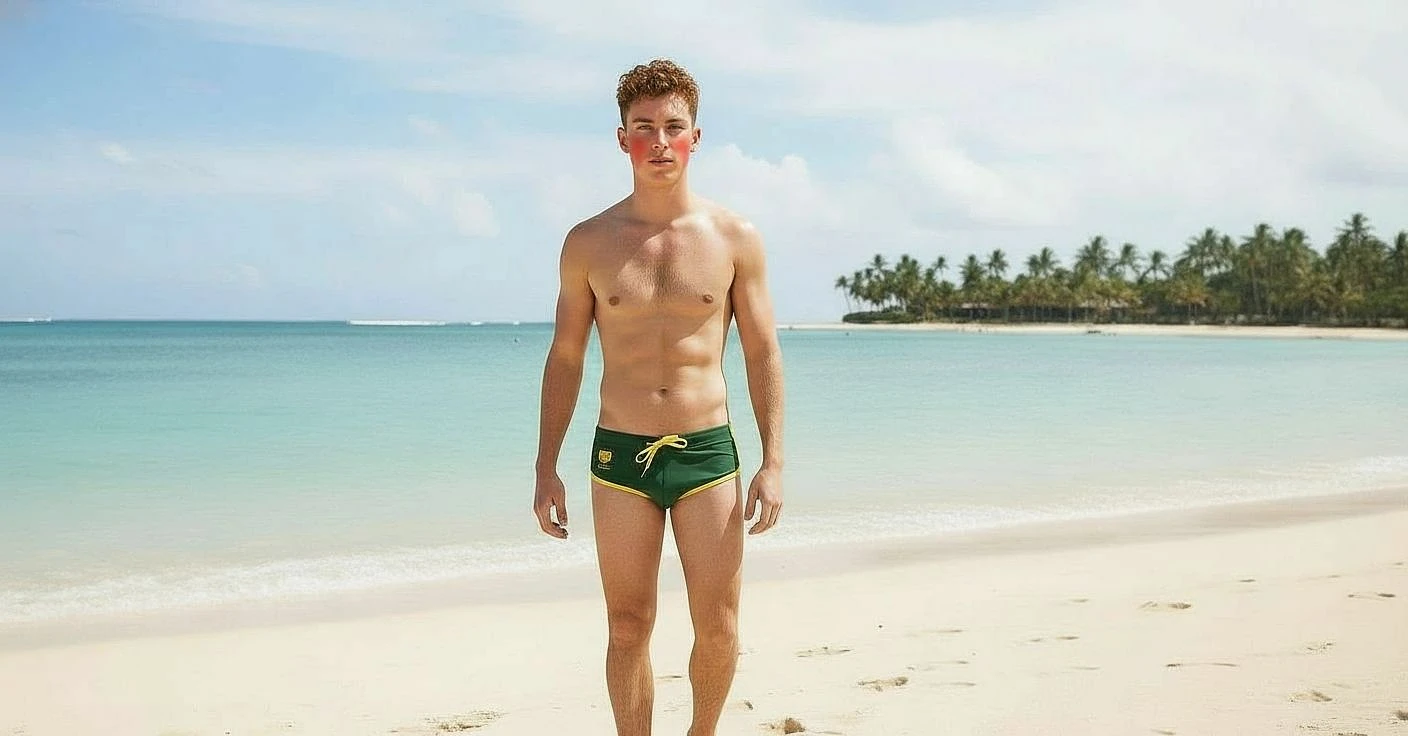 Make his facial features more youthful Make his eyebrows less bushy Make his cheeks slightly flushed