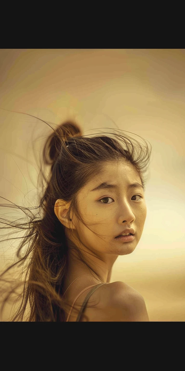 hyperrealistic photo, Asian beauty with portrait photography in a symmetrical composition, soft lighting, delicate skin texture, natural colors, high saturation, bright eyes, flowing hair, Shot in the style of photographer David LaChapelle, using a Canon EOS R5 mirrorless lens --ar 1:2 --stylize 750 --weird 2500