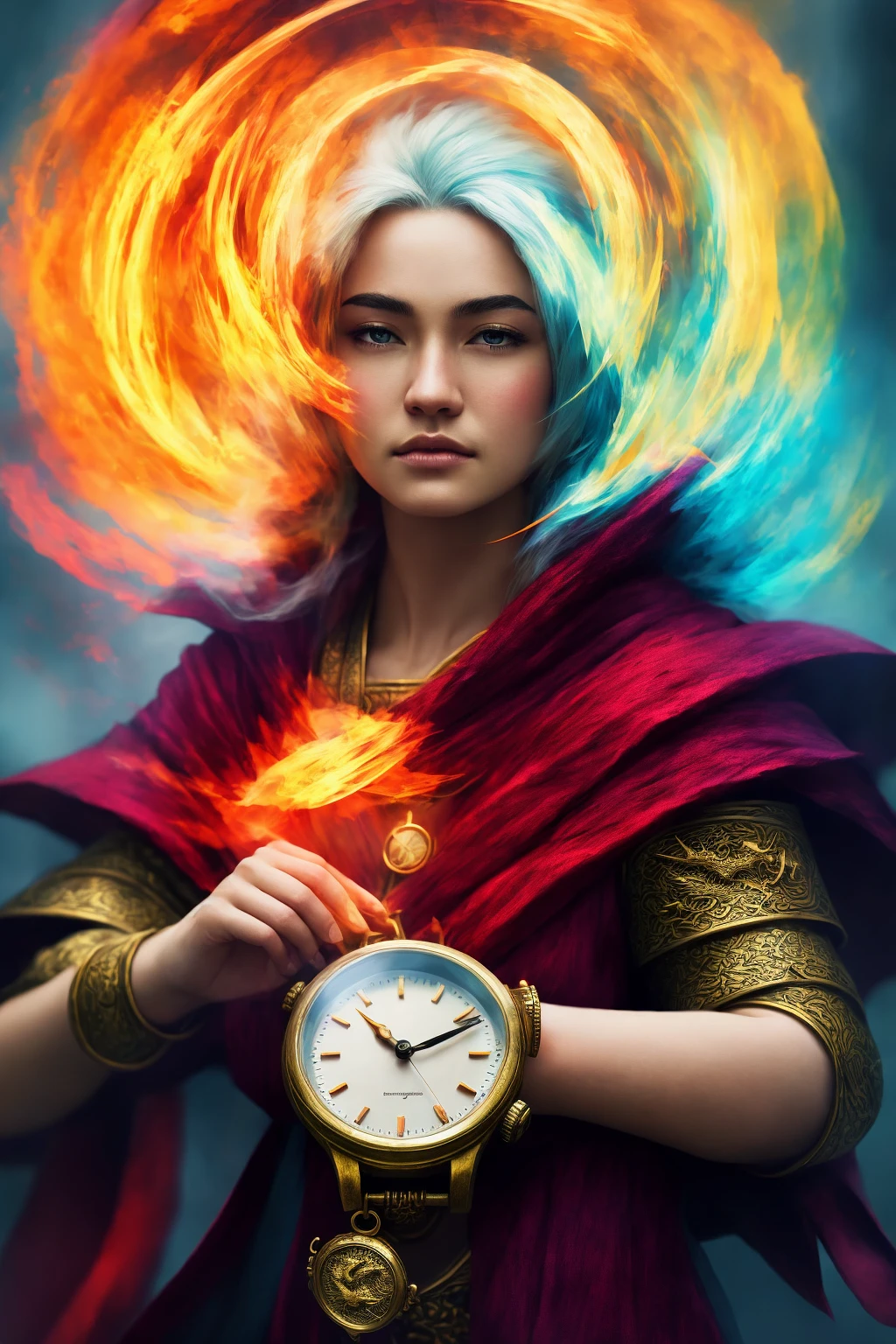 a (dragon:1.1) (mage:1.0) tinkering with a watch, 8k, masterpiece, vibrant, lamin martin, artgerm, trending on artstation, highly detailed, mist, portrait, volumetric lighting, extreme detail, fantasy –beta –ar 2:3 –upbeta