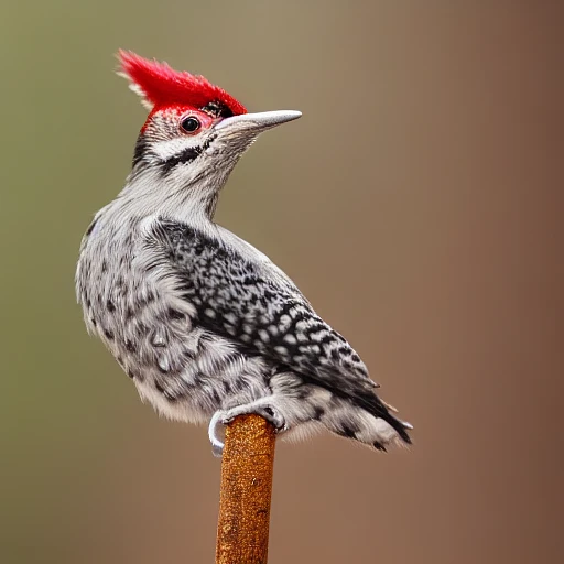 Close up photo of an ivori woodpecker, forest, haze, halo, dramatic atmosphere, focused, rule of thirds, 200mm 1. 4f macro shot