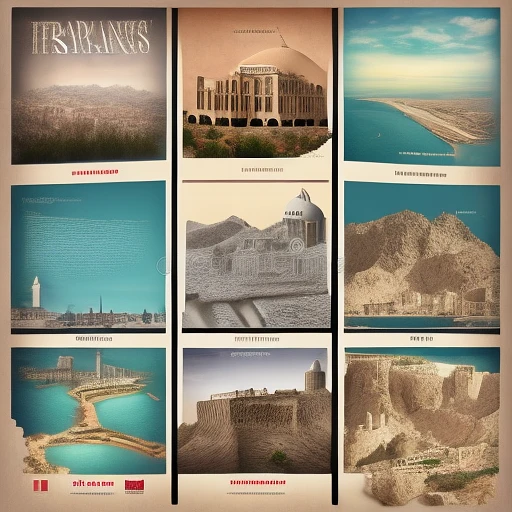Design a poster made up of 3 sections , with a historical place names theme , the design need to be modern and interesting, include royalty free images in it of historical places in Bahrain