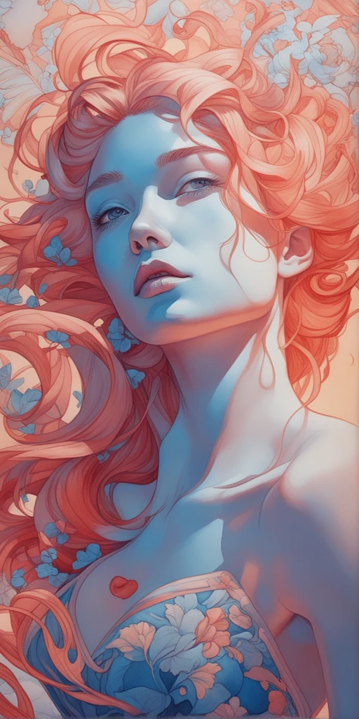 painting of a woman with red hair and a blue dress, james jean soft light 4 k, james jean soft light 4k, inspired by James Jean, artgerm and james jean, james jean and wlop, james jean andrei riabovitchev, james jean art, james jean artwork, vibrant digital painting, by James Jean, by james jean
