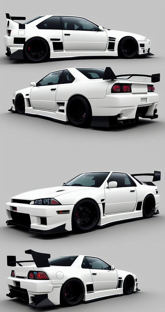 A cyberpunk themed sedan designed by white nissan skyline, Robotic, sleek, minimal, concept art, car design, art station, 3D render, octane, Unreal render, hi detail --ar 3:2 --upbeta --beta --upbeta