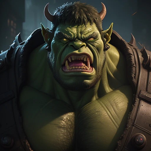 body portrait, very angry Hulk orc, intimidating, menacing, powerful, low angle, horror, octane render, smooth, sharp focus, dramatic light, fine details, masterpiece, trending on artstation, 4 k, art by stanley lau and jason chan and mark hill