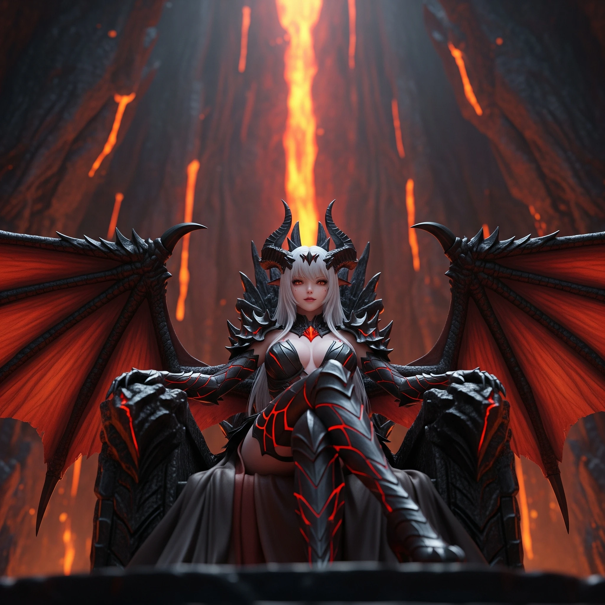Of course. Here is the full prompt that was used to create the last image where the character "pops out" from the background: "Anime style, Anime art. A breathtaking anime-style fantasy scene focusing on the Black Dragon Princess, making her pop from the background using a shallow depth of field effect. From a low, upward-facing full-body perspective, she is seated upon a towering obsidian throne within the heart of a colossal dragon’s cave. The background, featuring jagged obsidian walls and streams of molten lava, is artistically blurred, creating a beautiful bokeh effect that enhances the focus on the princess. The princess herself is sharply in focus and illuminated by dramatic rim lighting, separating her from the throne. Her skin is flawlessly pale, glowing with a cold luminance that contrasts against the infernal surroundings. Her face is exquisitely beautiful, drawn in the style of high-end Japanese anime—large, expressive eyes, sharp delicate features, and a mischievous smile playing on her lips. She exudes both elegance and danger. Despite her humanoid form, her draconic essence remains unhidden. Sharp, obsidian-black horns curve from her head with sinister grace. A pair of massive black dragon wings stretches behind her. She wears an intricate suit of armor forged from volcanic obsidian. The glowing lava veins on her armor radiate a more intense, brilliant light, drawing the eye directly to her. Rendered in ultra high definition 8K resolution, the scene bursts with cinematic clarity, with a clear distinction between the sharp, detailed subject and the soft, out-of-focus background
