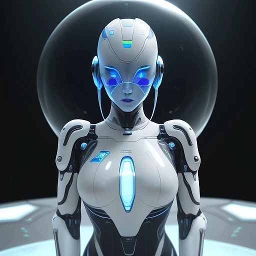 robot face :: futurism, cyborg, futuristic latex space suit with transparent luminous tubes, mechanics, Medium plan, distant plan, Shooting on the thigh on the waist :: blue eyes :: technologies, hard surface :: fashion :: sharp focus, high detail, cinema, cinematic :: white color :: minimalistic, futurem futurism, realism, ultra realistic, photorealism, cinematic light, studio light, mechanics, hard surface, octane render, highly detailed, render, 3d, unreal engine, lighting, 8k, 4k, glossy --q 2