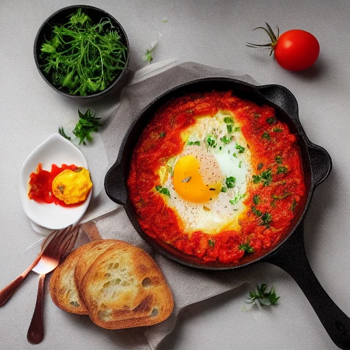 photo of a Shakshuka in a copper pan with baked eggs in a tomato sauce, containing tomato, peppers, onions, eggs and parsley, colorful and appetizing, colors are red, yellow, white, green, orange, hyper realistic, instagram foodie style, highly intricate, ultra detailed, high dynamic range, HDR, dynamic light, octan render, unreal engine, 8k, --ar 9:16 --testp --upbeta
