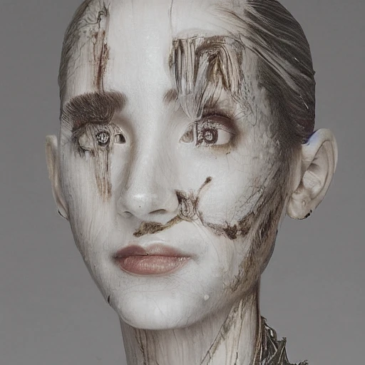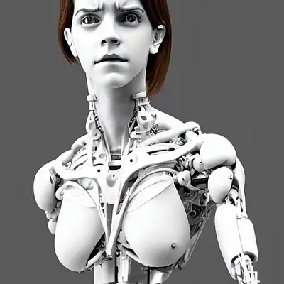 cyborg woman emma watson Miyazaki| with a visible detailed brain| muscles cable wires| biopunk| cybernetic| cyberpunk| white marble bust| sharp focus| smooth| hyperrealism| highly detailed| intricate details| carved by michelangelo full body shot