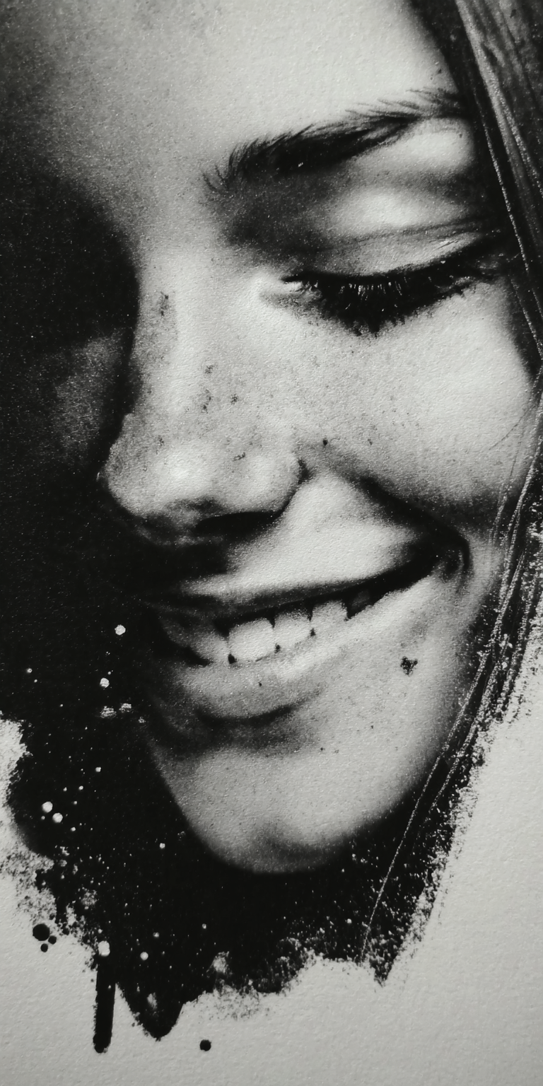 Midjourney prompt: charcoal sketch of a woman, side view, slight smil...