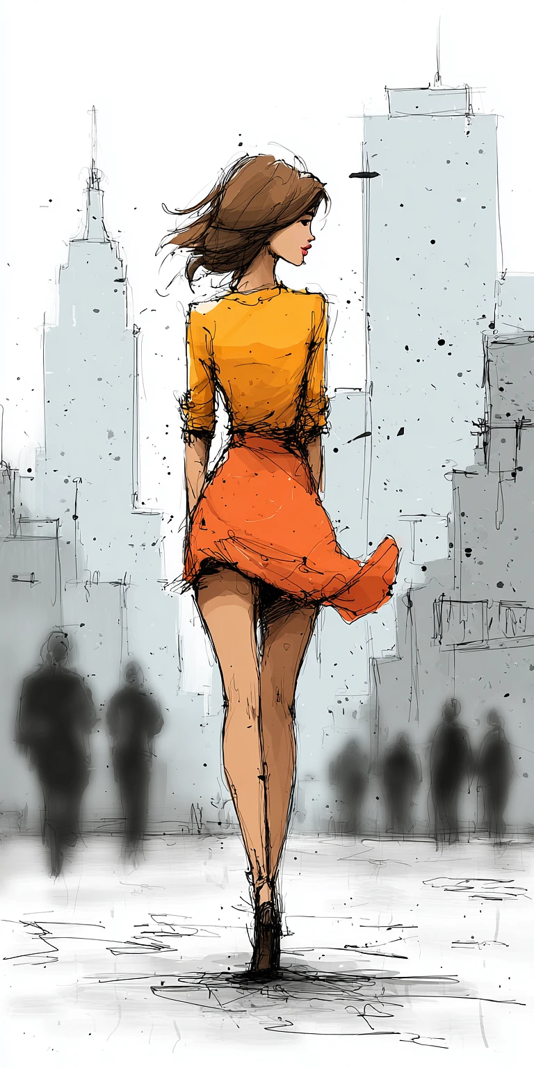 drawing of a woman, in the style of dynamic expressionist style --chaos 75 --ar 1:2 --sref 2970890349 --profile ooro6tr --stylize 750