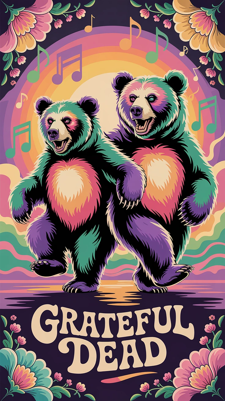 abstract Grateful Dead dancing bears surrealism --ar 1:2 --personalize yruxpc2 --stylize 850 --v 6. 1