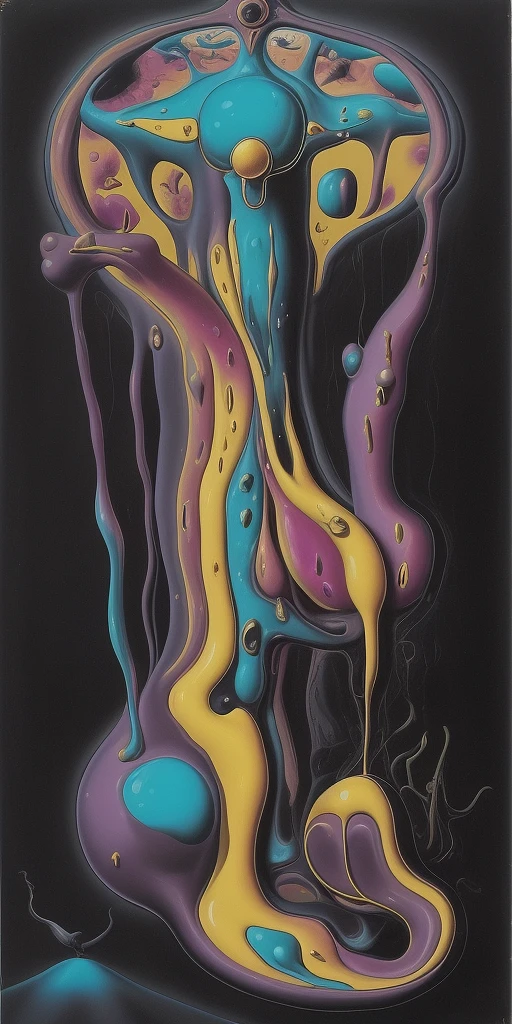 (surreal,abstract:1.1,weird) Salvador Dali painting, (soft shadows) , futuristic neon, (dream-like:1.1,imaginative:1.1,psychedelic) 16k colors, (melting clocks:1.1,morphing shapes) , (distorted:1.1,elongated) figures, (detailed:1.1,highly textured) landscapes, (vibrant,contrasting) color palette, (surrealistic:1.1,mysterious:1.1) atmosphere, (intricate:1.1,painterly) brushstrokes, (magical:1.1,mystical) effect, (mind-bending) optical illusions, (unconventional:1.1,unique) perspectives, (enigmatic) symbolism, (sensational,avant-garde) composition, (twisted:1.1,bizarre) 4d objects, (illusionary,absurd) elements, (timeless) masterpiece.