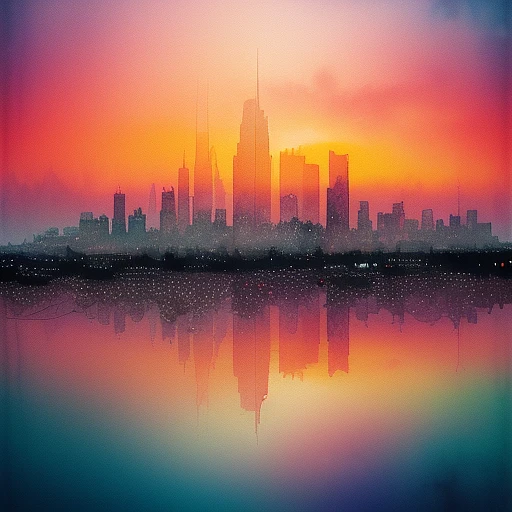 City skyline across the water at sunset, Spiriling Double exposure Digital watercolor Illustration of a summerscape sunset, by Waterhouse, Carne Griffiths, Minjae Lee, Ana Paula Hoppe, Stylized watercolor art, Intricate, Complex contrast, HDR, Sharp, soft Cinematic Volumetric lighting, flowery pastel colours, wide long shot, perfect masterpiece"