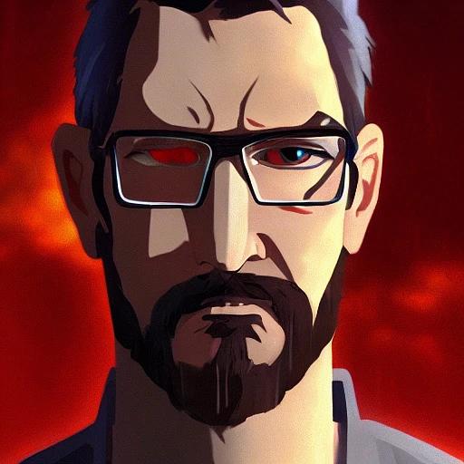 High quality portrait of Gordon Freeman from HL2. Art by Makoto Shinkai, Crunchyroll, pixiv, danbooru, HD, headshot, cinematic still, detailed anime face, bokeh, digital art, cel shading, vivid colors, ambient lighting