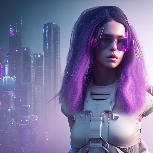 Cyberpunk Girl, Skyline in Backround, Purple Hair, intricate artwork . octane render, trending on artstation, t symmetrical artwork. cinematic, hyper realism, high detail, octane render, 8k