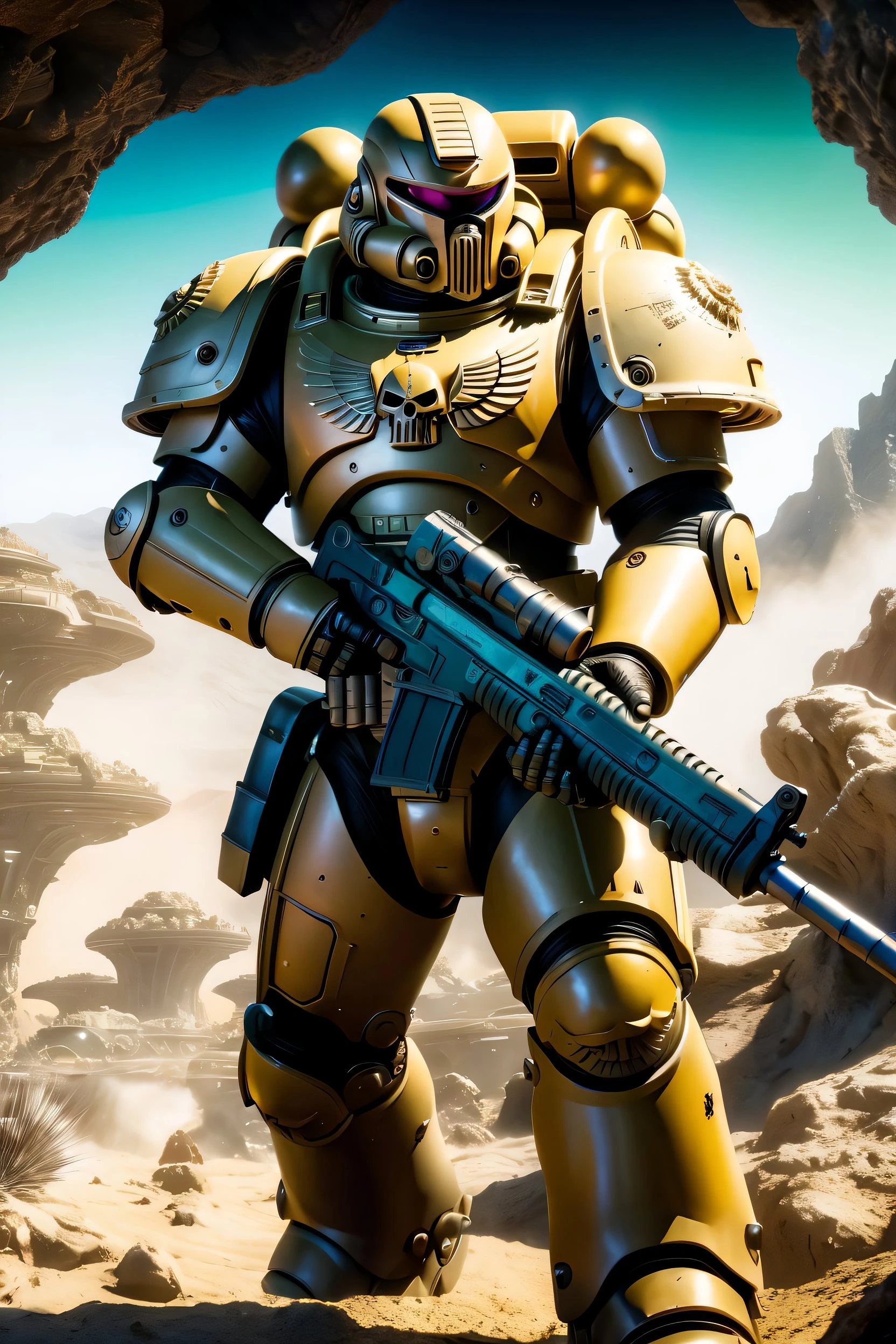 (extremely detailed 8k wallpaper) , a medium shot photo of a detailed space marine in an alien landscape holding a futuristic weapon, Intricate, High Detail, dramatic, best quality masterpiece, photorealistic, detailed, 8k, HDR, backlighting, bloom, light sparkles, chromatic aberration, sharp focus, <lora:add_detail:0.4> <lora:epi_noiseoffset2:0.4> <lora:hairdetailer:0.6> <lora:more_details:0.3> <lora:add-detail-xl:1.2> <lora:DetailedEyes_V3:1.2> <lora:sd_xl_offset_example-lora_1.0:1.2>