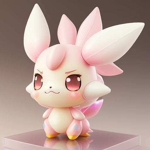 ( volumatric lighting , very detail face ,white background) ), 3D model , Nendoroid style, Japanese mascot, art toys secret collectible figurine, ((a cute new pink pokemon , minimalist cartoon,smart smile , happy face , brown eye , glow pastel rainbow, hd beautyful minimal glitter milky way leaf texture , a symphony of visual balance harmony, inspired by Demiguise in fantastic beasts) ), beautyful 3D render, product picture , mr. bean character, relax poses , design by studio ghibli, mood shiny.