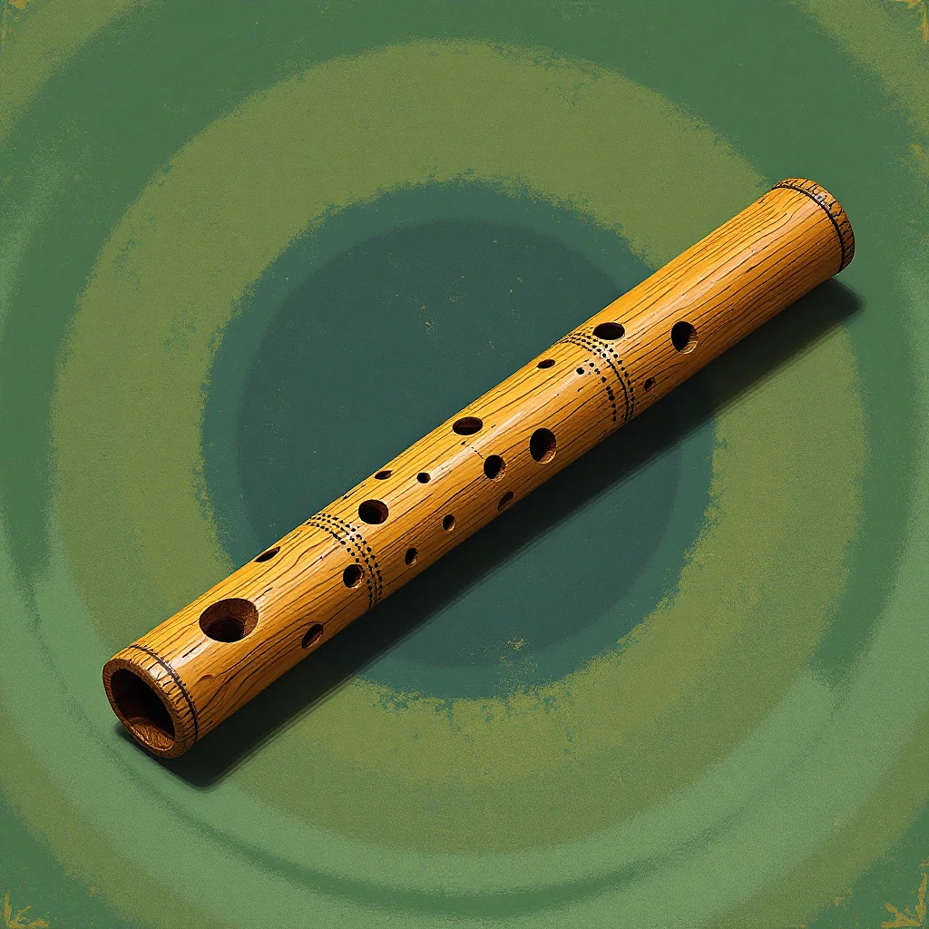 a single peruvian wooden flute in a Hyperralistic indie movie poster in Kamchakta