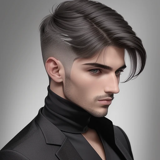 corte de cabello masculino que muestre una escala tonal. Comienza con un tono base y crea diferentes tonalidades en el cabello, desde el tono más claro hasta el más oscuro. Utiliza colores adecuados para representar cada tonalidad y Asegúrese de que haya una transición suave y gradual entre los tonos. Puede añadir sombras y luces para resaltar los detalles del corte de cabello. La imagen debe ser clara y fácil de distinguir cada escala de tonalidad en el cabello. Por favor, incluye también una leyenda o etiquetas que indiquen los nombres o números de cada tono en la escala.
