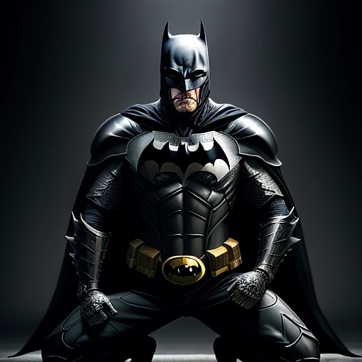 kneeling batman lion knight, portrait, finely detailed armor, intricate design, silver, silk, cinematic lighting, dramatic lighting, 4k