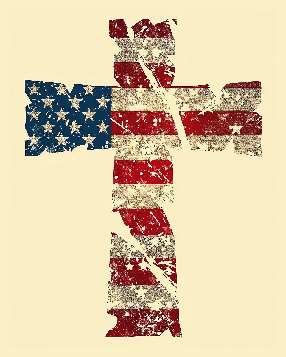 A cross in the shape of an American flag, stars and stripes pattern, high resolution vector graphic, minimalistic design --ar 4:5 --stylize 400 --v 6