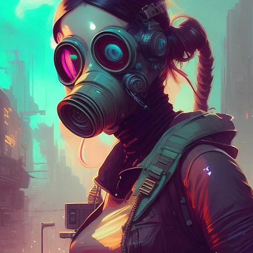 girl wearing cyberpunk gas mask, Cyberpunk Colors, Cyberpunk Style, fantasy art by greg rutkowski, loish, rhads, ferdinand knab, makoto shinkai and lois van baarle, ilya kuvshinov, rossdraws, tom bagshaw, alphonse mucha, global illumination, radiant light, detailed and intricate environment