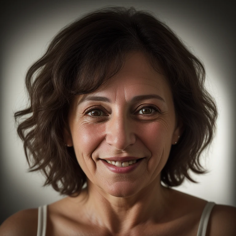 hyper realistic headshot photo of a 40 year old, jewish setler woman, looking into the camera, smiling slightly, ultrarealistic, soft lighting, 8k