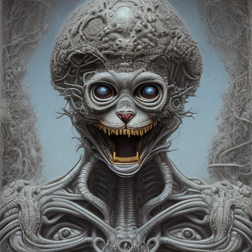 octrender, 8k, hyperreal, hr giger angry cat with Dripping gloss particle explosion, extremely detailed, sharp focus, full body shot, smooth, digital illustration, by james jean, by banksy and mcbess, high contrast, clean lines --ar 2:3 --beta --upbeta