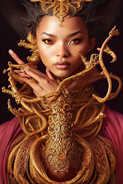 : sango fantasy, fantasy magic, , intricate, sharp focus, illustration, highly detailed, digital painting, concept art, matte, Artgerm and Paul lewin and kehinde wiley, masterpiece