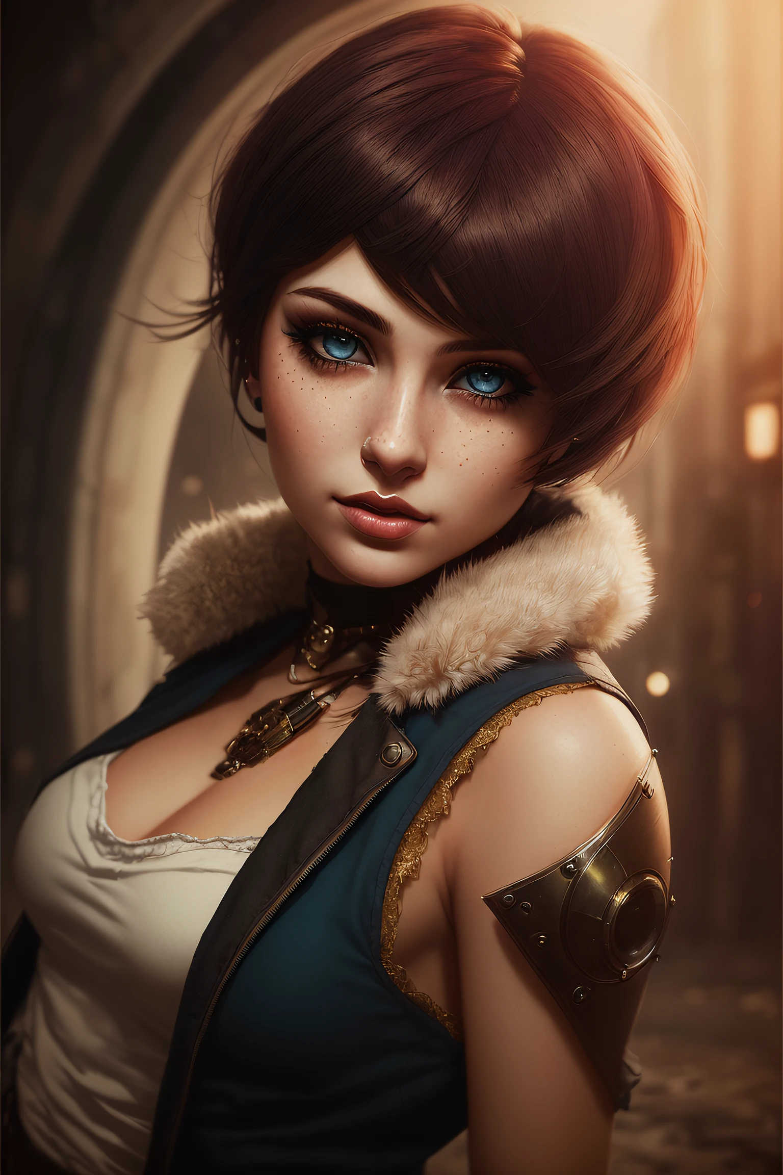 a portrait of a pretty (sewer punk:1.1) young lady, by anna dittmann , Glow effect , Cinematic Lighting , Very Detailed Skin, Extreme Detailed Eyes, 8k, UHD, HDR, (Masterpiece:1.5) , (best quality:1.5)