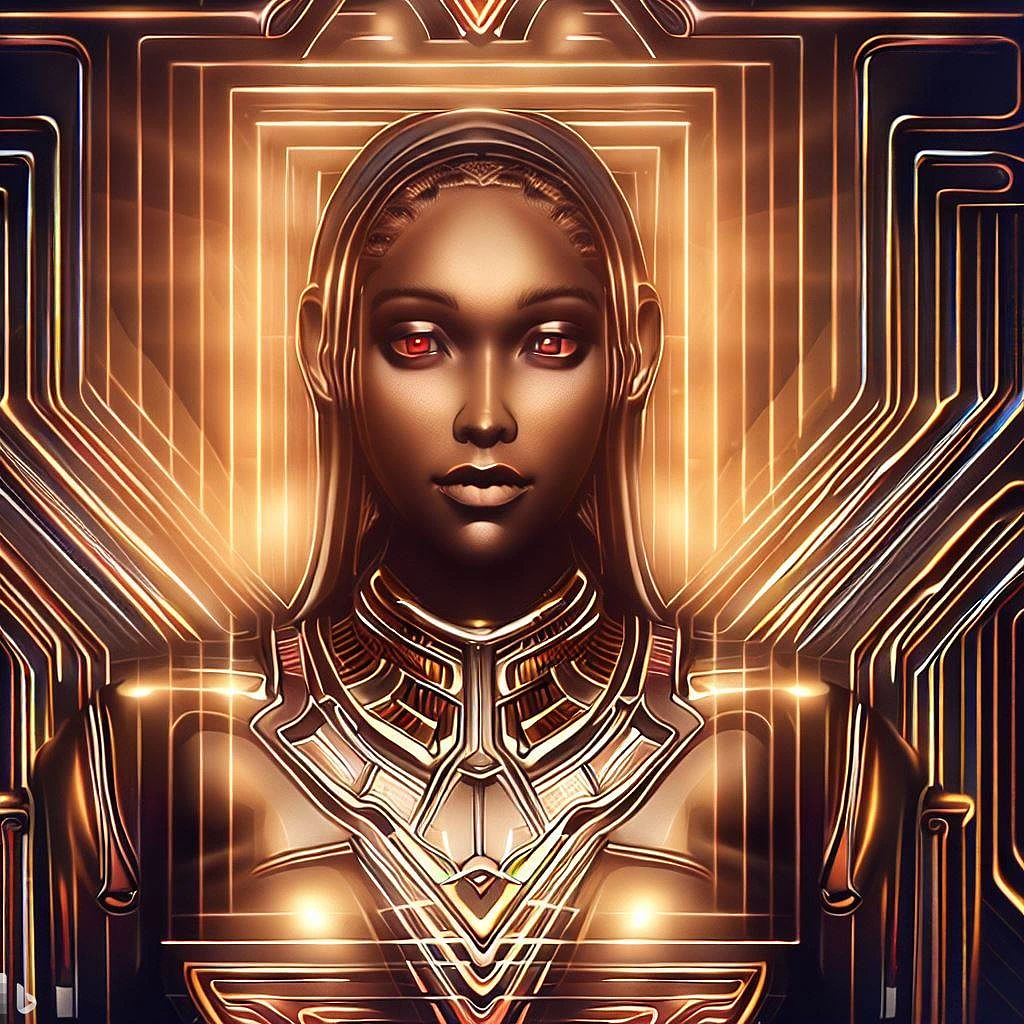 symmetry! ! egyptian princess of technology, Margot Robbie, solid cube of light, hard edges, product render retro - futuristic poster scifi, lasers and neon circuits, brown skin man egyptian princess, intricate, elegant, highly detailed, digital painting, artstation, concept art, smooth, sharp focus, illustration, dreamlike, art by artgerm