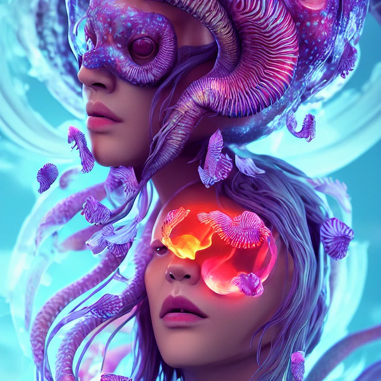 goddess close-up portrait ribcagel. jellyfish phoenix head, nautilus, orchid, skull, betta fish, bioluminiscent creatures, intricate artwork . octane render, trending on artstation, t symmetrical artwork. cinematic, hyper realism, high detail, octane render, 8k