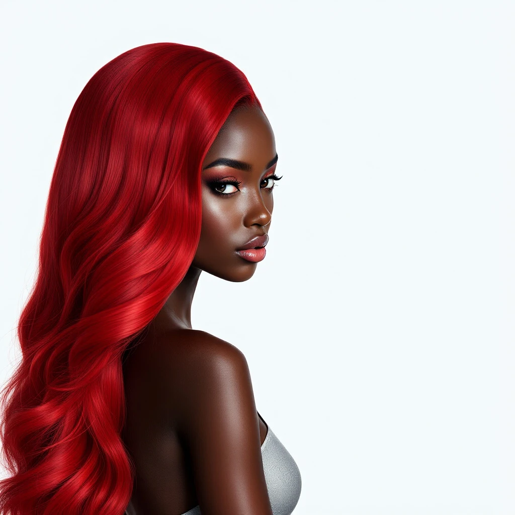 ULTRA REALISTIC BLACK FEMALE WITH HAIR colored red FOR HAIR COMPANY ad