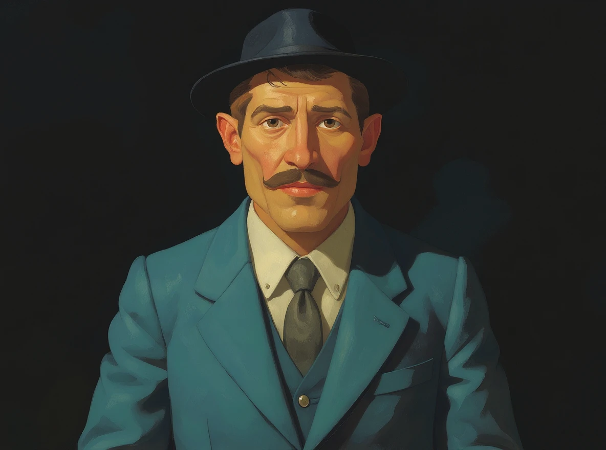 Make a square aspect ratio avatar of the main character with dark color background. Retain the existing style and characteristics of the main character. Make the main character face towards the camera.