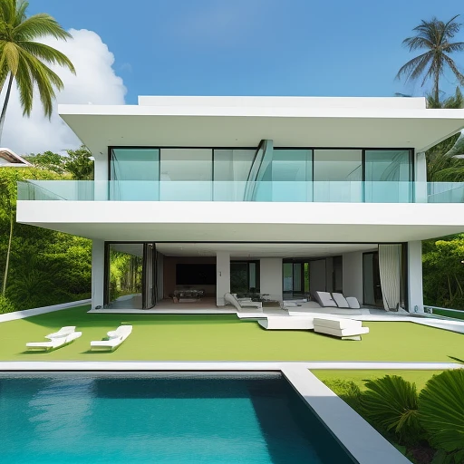 ultra-modern mega villa by the sea with swimming pool and green space with beautiful open space and tropical paradise green space and guest annex