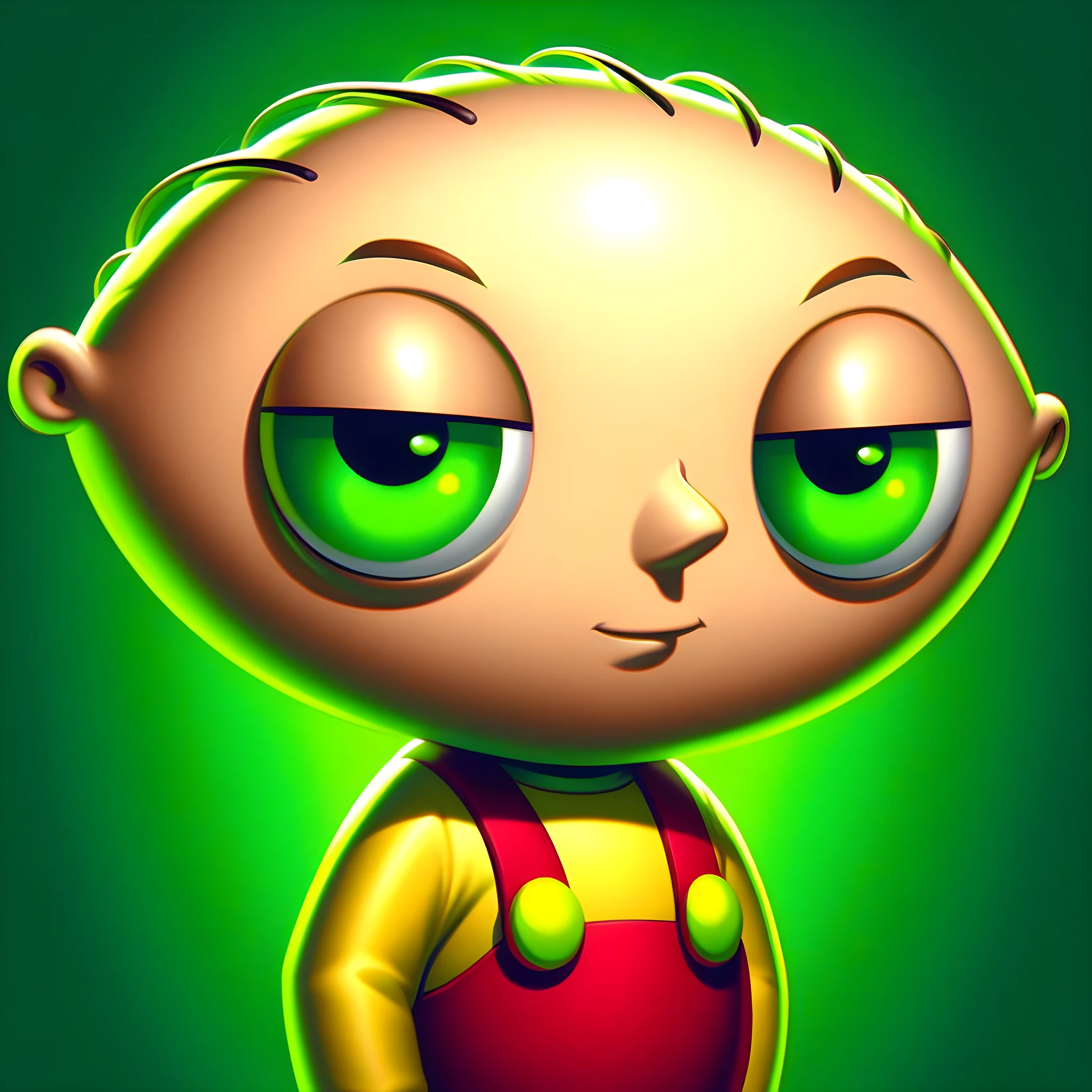 Stewie Griffin, Digital painting, Adobe Photoshop or a similar raster graphic editor, Modern era (21st century) , Predominantly green palette with highlights of yellow-green and accents of red.