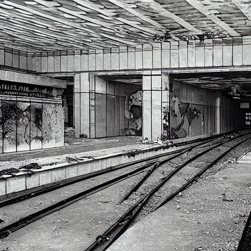 create an abandoned metro station, with radioactive signs, and in ruins this is the most important thing on the image