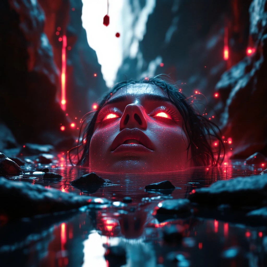 Darkwave, synthwave, many heavy reflective floors and other objects. A very beautiful head of a gorgeous woman emerges in the foreground, epically in a close-up. From the mouth downwards, the very beautiful woman is submerged in a reflective floor. This epic cover for a music album is meant to symbolize the downfall of humanity and the rise of artificial intelligence. Overall, there are many reflective objects in the environment, such as multiple stones, cyberpunk art by Maciej Kuciara, cinematic lighting, flashes, and darksynth concept art. Darkwave, synthwave, many heavy reflective floors and other objects. This epic cover for a music album is meant to symbolize the downfall of humanity and the rise of artificial intelligence. Overall, there are many reflective objects in the environment, such as multiple stones, cyberpunk art by Maciej Kuciara, cinematic lighting, flashes, and darksynth concept art Grim space skull grim reaper from space, Darkwave, synthwave, epic music album cover. glowing dead eyes of a woman, retro movie poster art, dust, dramatic lighting, artstation, 9k Red Lights , alberto seveso art, sillhouette, water ink, ink water, ink cloud, alberto seveso art, loose, intricate detail, beautiful woman, cinematic lighting, octane render, 8k render, volumetric lighting grim reaper from space, Darkwave, synthwave, epic music album cover. glowing dead eyes, SKULL, retro movie poster art, dust, dramatic lighting, artstation, 9k Red Lights , loose, intricate detail, cinematic lighting, , 8k render, grim reaper from space, Darkwave, synthwave, dance with the dead, epic music album cover. glowing dead eyes, SKULL, 80s retro movie poster art, dust, dramatic lighting, artstation, 9k Red Lights , loose, intricate detail, cinematic lighting, , 8k render, grim reaper from space, Darkwave, synthwave, cyberpunk, dance with the dead, epic music album cover. glowing dead eyes, SKULL, cyberpunk art by Maciej Kuciara, 80s retro movie poster art, dust, dramatic lighting, artstation, 9k Red Lights , loose, intricate detail, cinematic lighting, , 8k render,