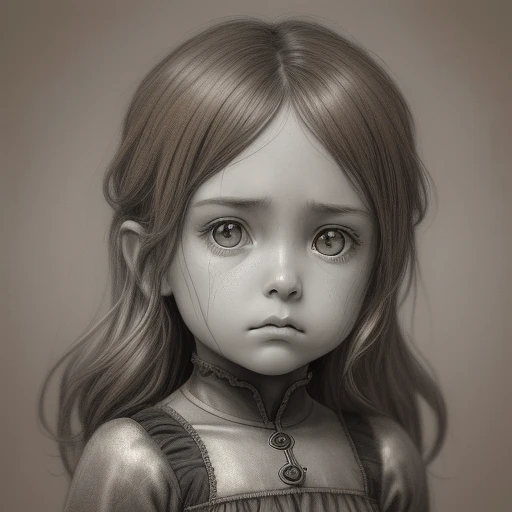 pencil sketch in the style of beautiful child, close-up intensity, gray and bronze, rangercore, intense emotions, 19th century style, symmetrical asymmetry --ar 68:128 --stylize 750 --v 5. 2, 8K