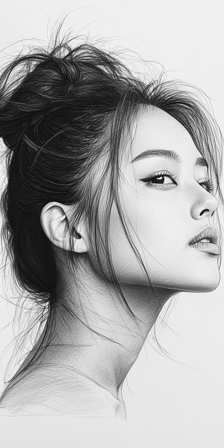 simple pencil sketch by Odilon Redon, face only, a gorgeous Asian woman, side angle, hint of a smile, noticeable charcoal marks, white background, no coloring, no color --chaos 75 --ar 1:2 --style raw --profile rsy6uq9 --stylize 750 --v 6. 1