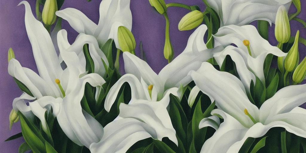 white open Lilies in the field flower in the style of Georgia O'Keeffe hyperrealisme