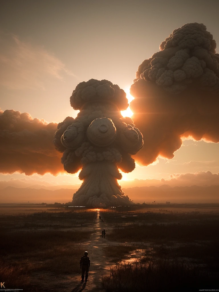 Photo of a ultra realistic nuclear war , dramatic light, pale sunrise, cinematic lighting, battered, low angle, trending on artstation, 4k, hyper realistic, focused, extreme details, unreal engine 5, cinematic, masterpiece, art by studio ghibli, intricate artwork by john william turner