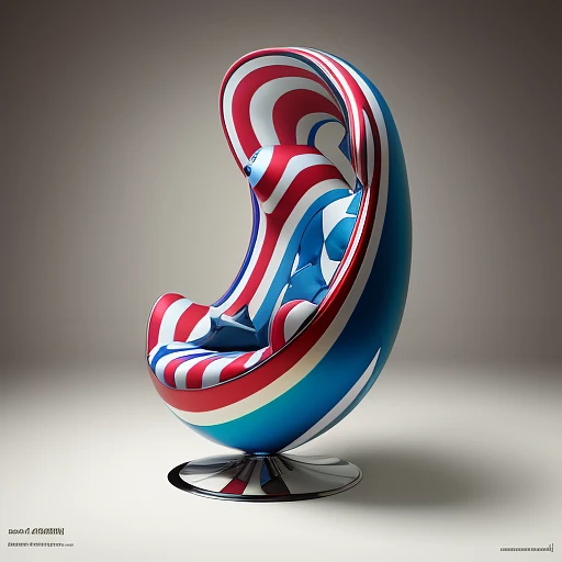 Product photography, a colorful egg chair with Captain america striped pattern on it, in the style of esteban vicente, pixel perfect, illusionary spaces, furaffinity, brian oldham, high tonal range, cloisonnism