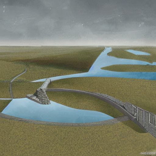 Stable Diffusion prompt: A long lake sand dam low in the flatlands made f...