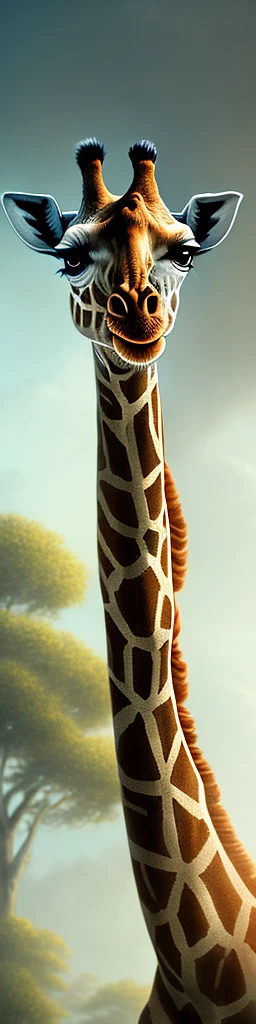 a a giraffe with a very very long neck, with big highly detailed eyes, trending on artstation, sharp focus, studio photo, intricate details, highly detailed, by greg rutkowski, pixar style, centered, isolated, on white background