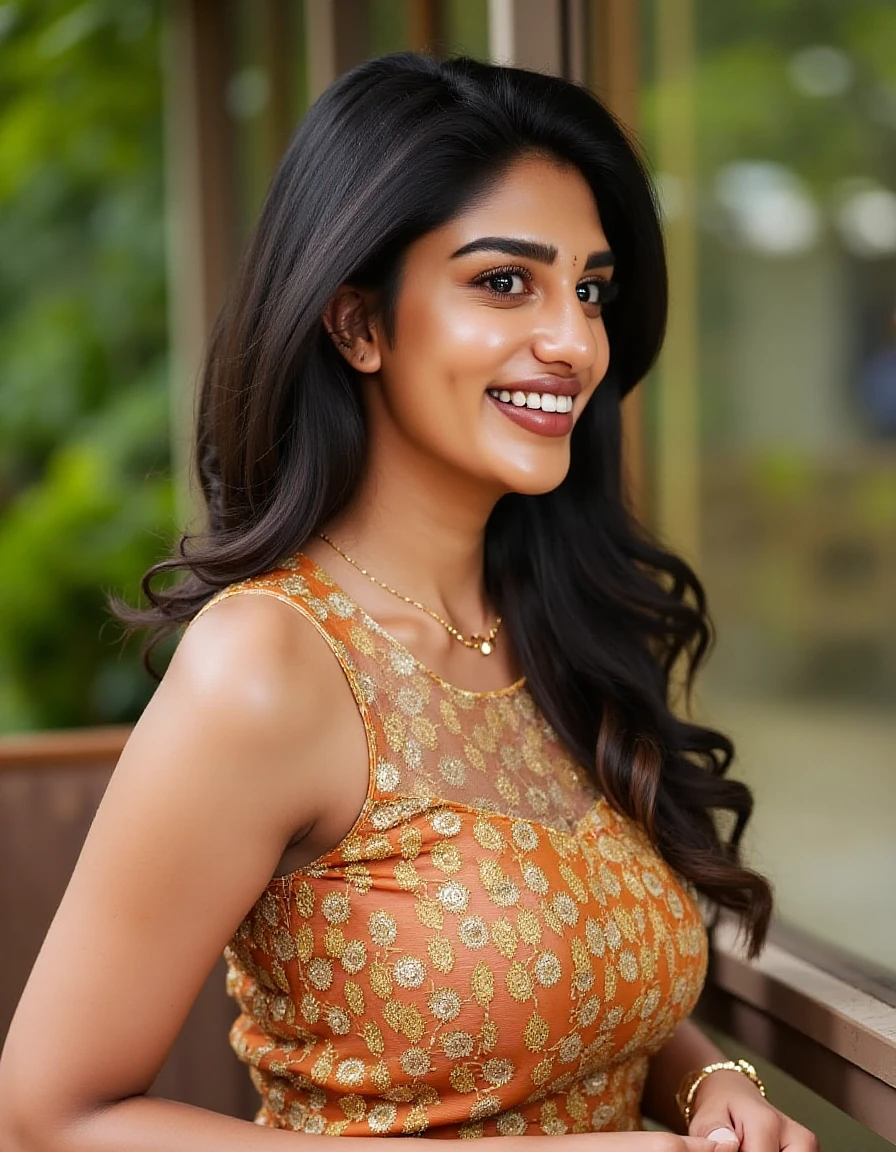 Jennifer Connelly , 18-21 years old, brown hair, Indian hair style, saree, trying to removing the jacket , inhaled chest, wide open eyes, A plus curvy shaped body structure, wearing bangles on hand, bindi, high-quality photo portrait, shot on a Kodak camera, photography, environmental, double eyelid --ar 34:65 --style raw <lora:supri-lora:2>