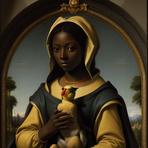 epiCRealism prompt: dark skin, Virgin Of The Goldfinch - Raphael, hype...