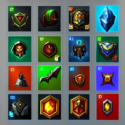video games icons, 2d icons, rpg skills icons, world of warcraft items icons, league of legends items icons, ability icon, fantasy, potions, spells, objects, flowers, gems, swords, axe, hammer, fire, ice, arcane, shiny object, graphic design, high contrast, artstation --uplight
