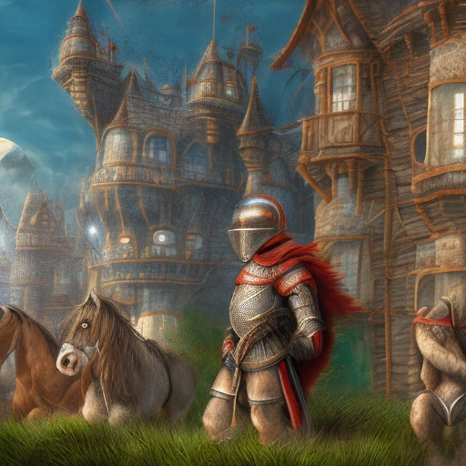hyperrealistic knight monkey in the middle age, he is sittin, in the background horses and knights are passing by. the background is a midle age city. photorealistic